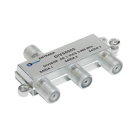 Divisor de sinal 1 entrada e 3 saídas, baixa frequência. Ideal para sinal VHF, UHF e HDTV.