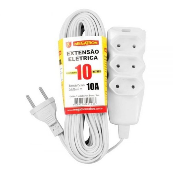 Extensão Elétrica 2P 10A Branco – 10 Metros