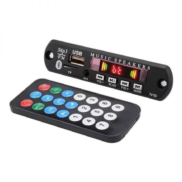 Placa Bluetooth USB Cartão de Memória SD Auxiliar P2 Rádio FM MP3 Preto com Controle Remoto Especificação Técnica: • Fabricado em Plástico Rígido na Cor Preta • Display de LED RGB • Conexão Bluetooth para Reprodução de Músicas • Entrada: Auxiliar P2 • Entradas: USB e Cartão de Memória SD TF Reprodução de Arquivos: MP3, WMA e WAV • Sintonização de Rádio FM • Alimentação: 5V e 12V • Equalizador Automático • Acompanha Controle Remoto • Conteúdo da Embalagem: • 01 Placa módulo BT-373 • 01 Controle Remoto • Chicotes para Instalação